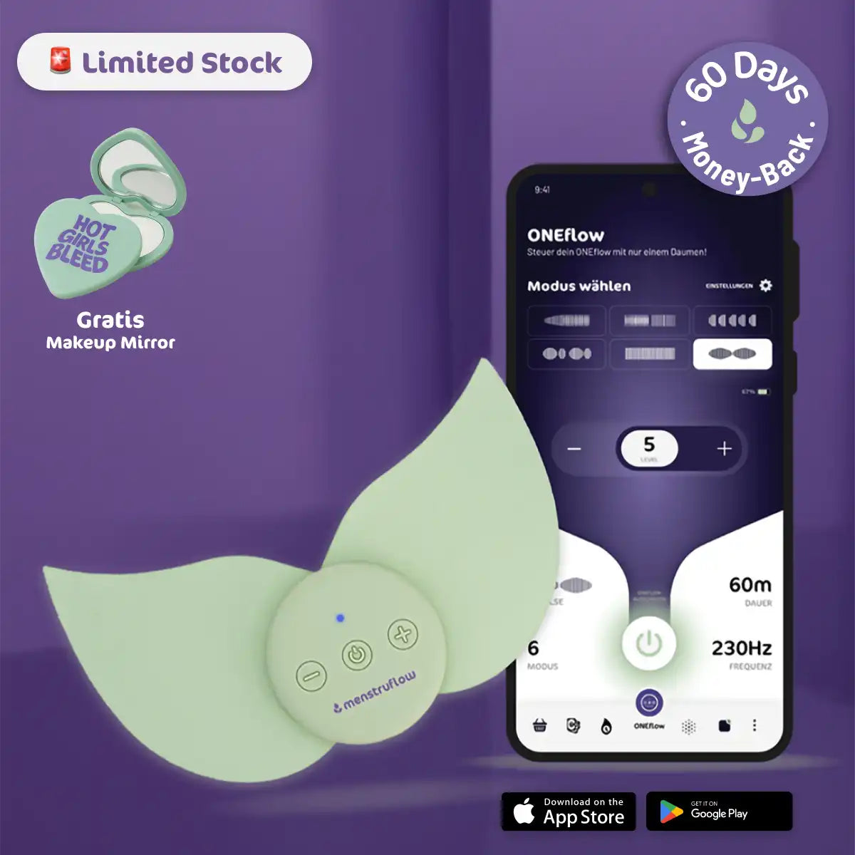- ✔ ONEflow TENS-Gerät gegen Regelschmerzen & Endometriose